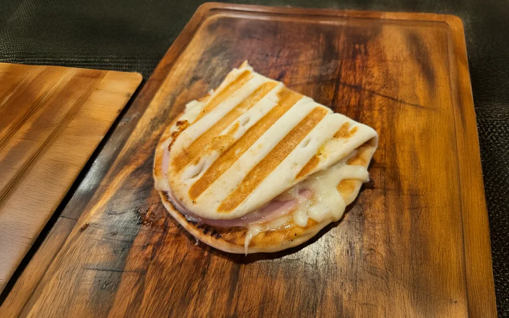 メインメニューの「ナンホットサンド」は、パンではなく「ナン」という素材に着目し、焼きあがった後のサクサクした食感と香ばしさを存分に活かした新感覚のサンド。